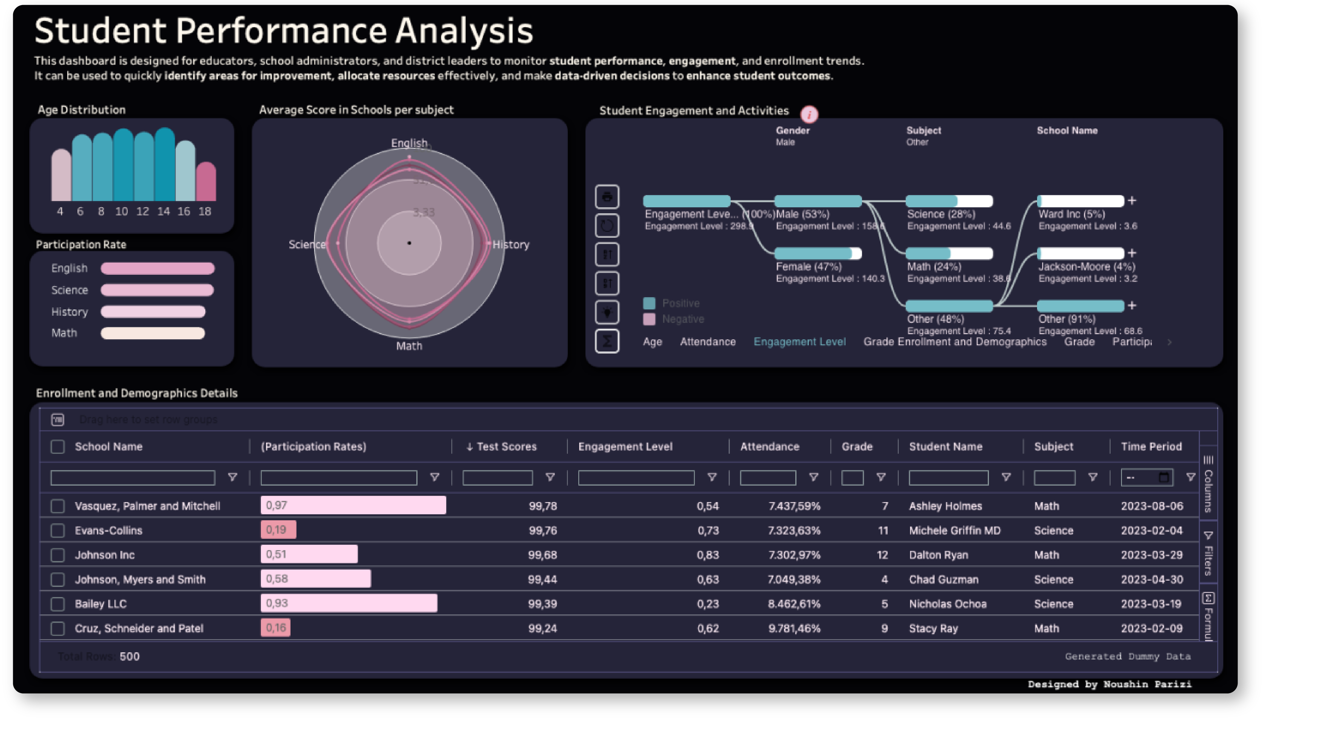 Discover the power of insights with our interactive dashboard! Designed for educators and school leaders, this solution helps you visualise key trends in student engagement, participation, and scores across subjects. Easily spot areas for improvement and make data-driven decisions to boost student outcomes. Download now and see how it can elevate your education strategy.