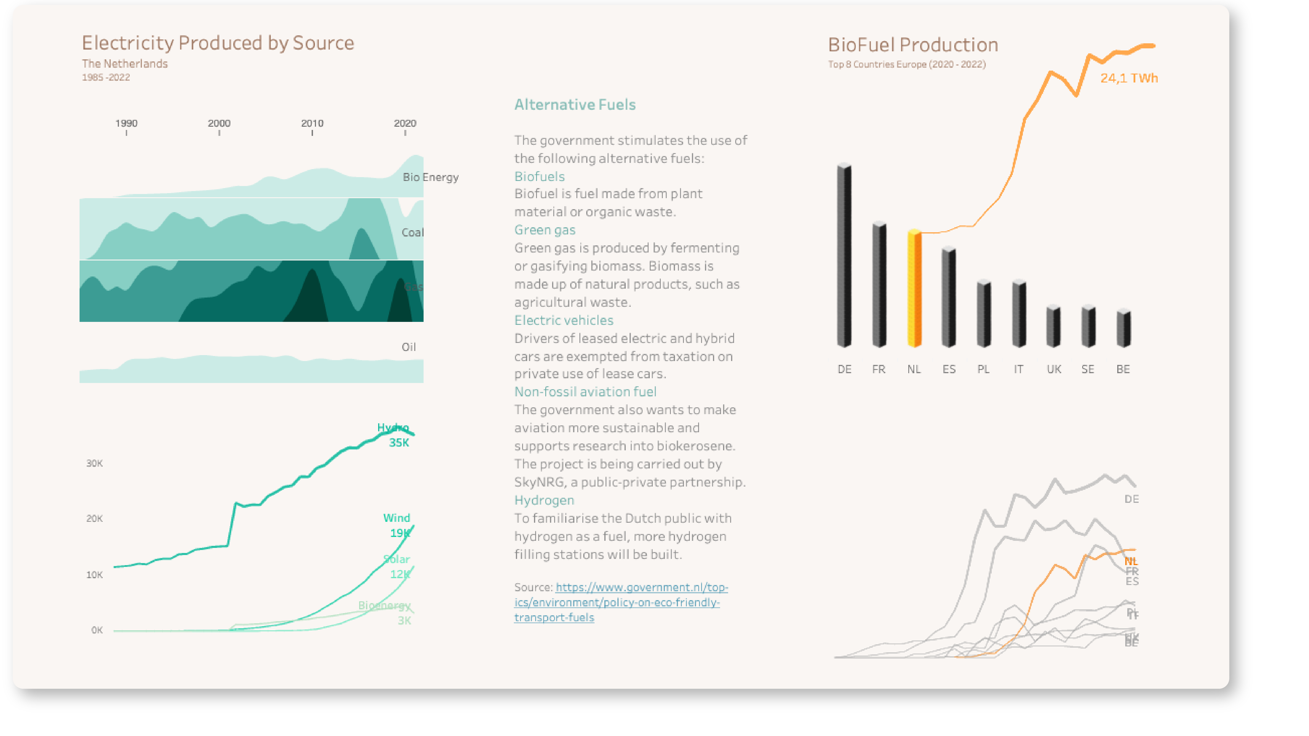 Explore our dynamic dashboard showcasing global electricity production, clean fuel accessibility, and energy consumption, with a focus on the Netherlands. Using innovative charts like horizon and Sankey, we offer a clear view of the world's energy landscape. Dive into shifting power generation sources, track clean fuel access, and monitor CO2 emissions from coal. download this dahsboard for understanding the complexities of our energy future.